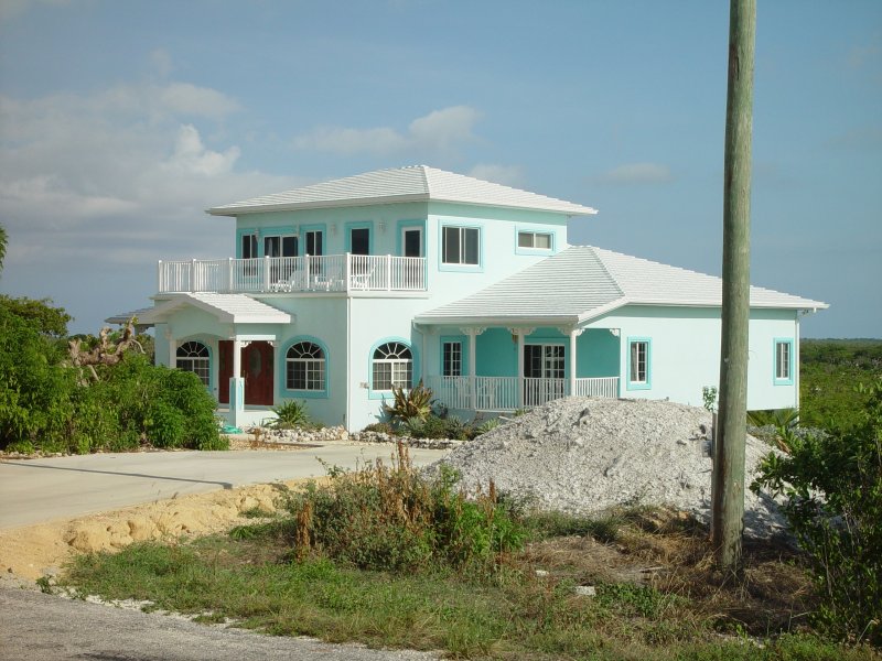 A huge house with a teal