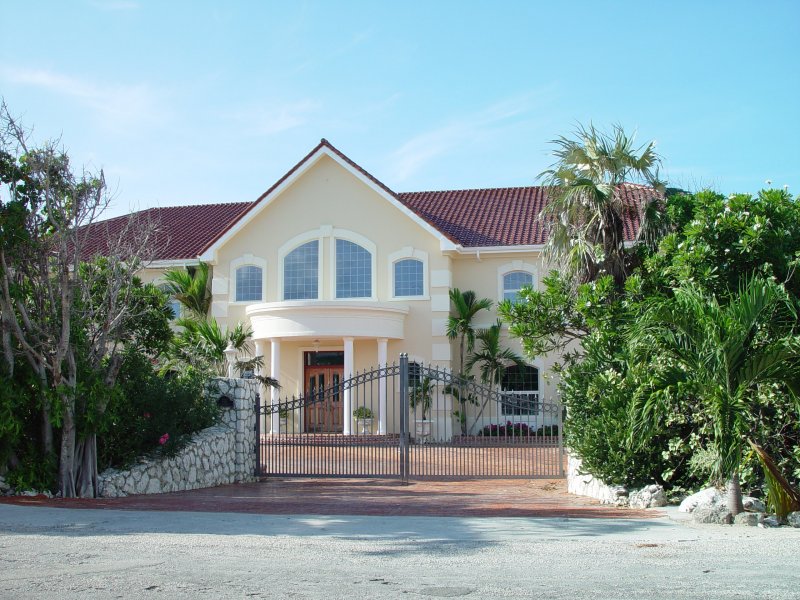 A huge house with a teal