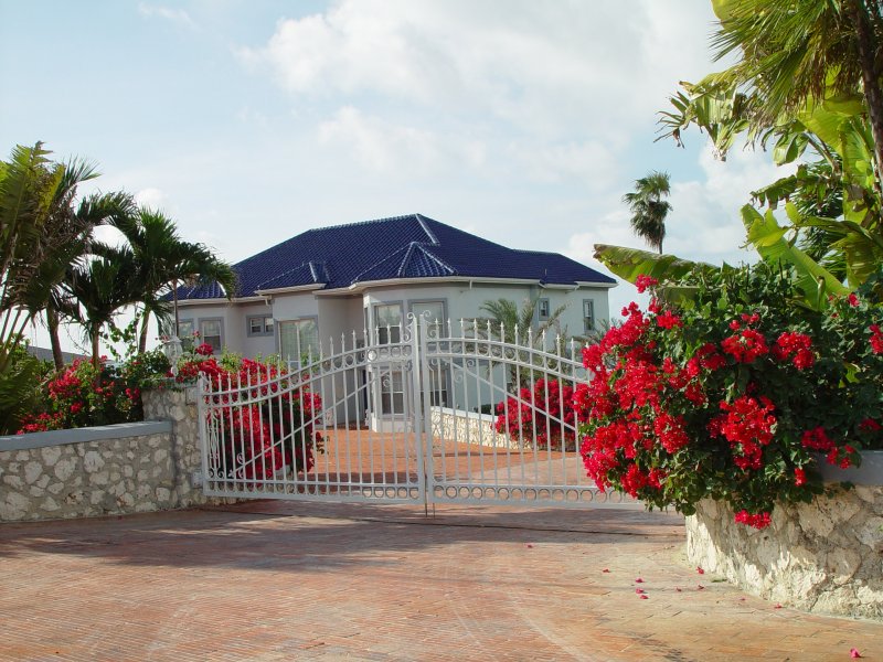 With a royal-blue tile roof